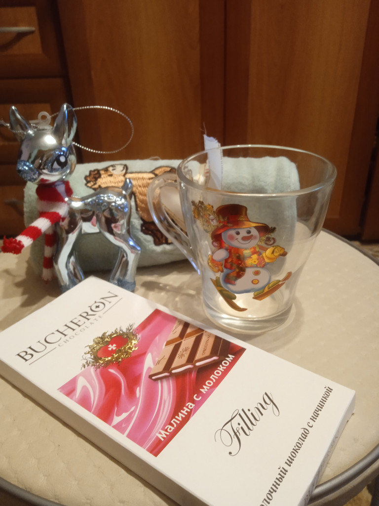 Снегурочка исполнила весь мой список желаний! Я буду пить тёплый чай, присланный вами, из кружки, которую подарила снегурочка.