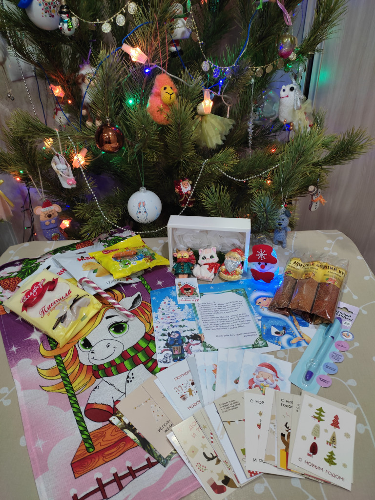 Сувениры, магнитики. Полотенце, сладости и другие радости. Огромное спасибо, за новогоднее настроение.