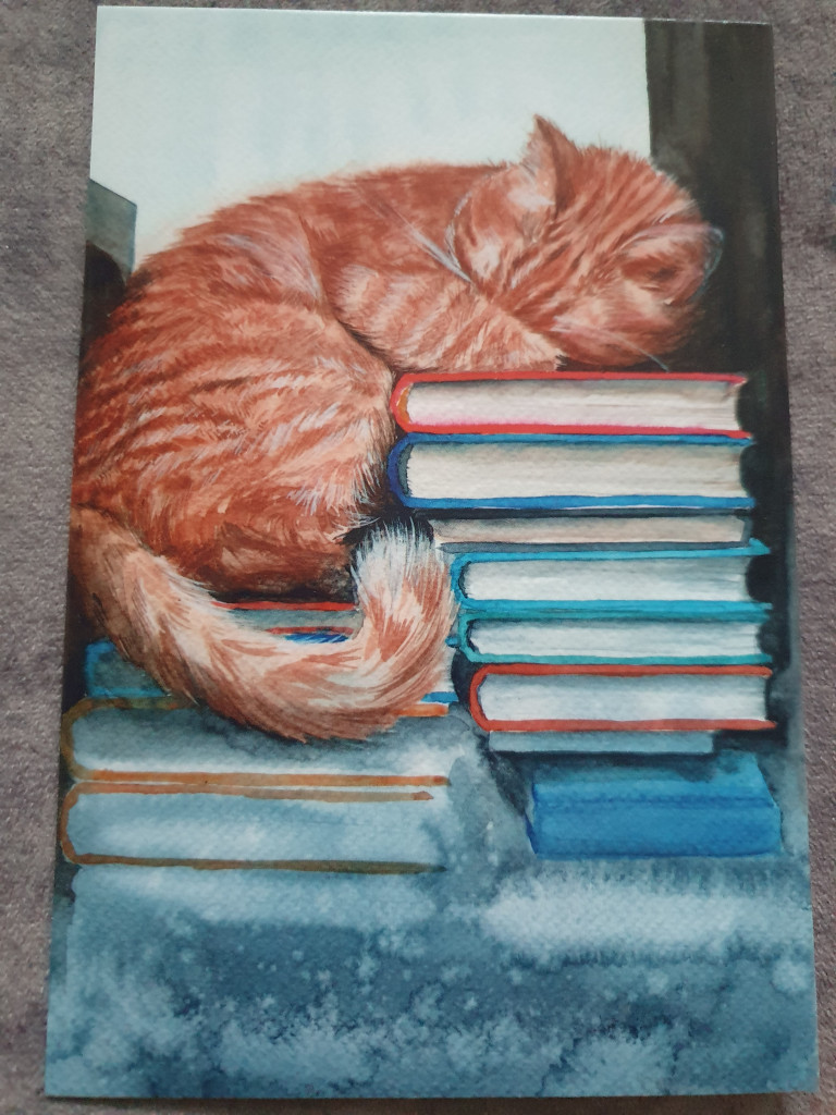 А еще сюрпризные открытки. Акварельные алые паруса - прелесть невероятная и милый Усатый-полосатый!