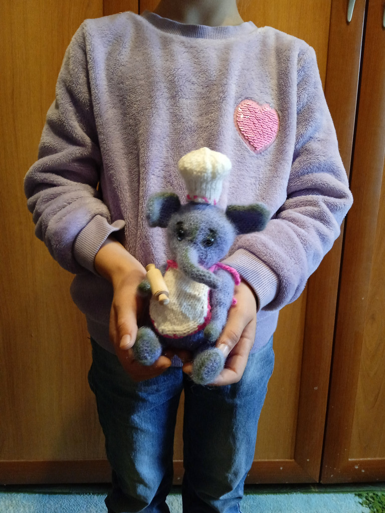 Вот и ко мне приехал изюм. Золотые руки Стэллы @Сладкоежкина связали для меня слоника, а изюмом была скалка. Вот слоник и примерил на себя роль повора. Приготовил много сладостей, и радостей и конечно привёз с собой.
