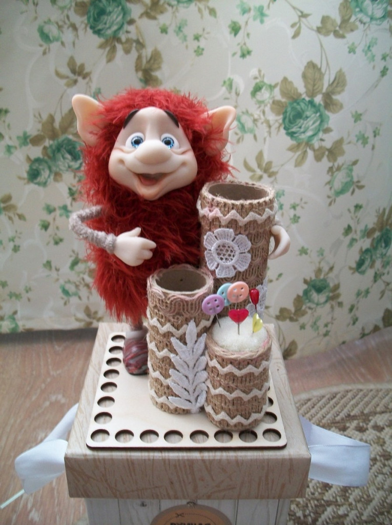 Она прелесть просто :toy: правда, я пока ещё не придумала, что хранить в баночке, которая спряталась под овечкой, но обязательно придумаю.