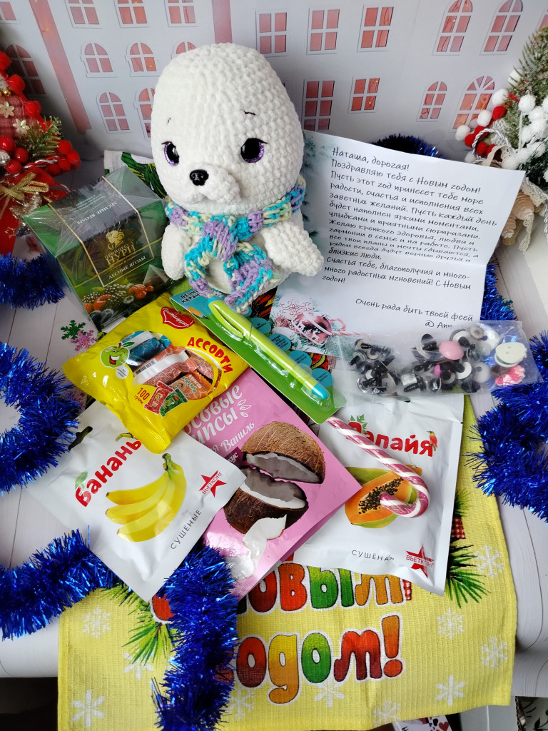 Я сейчас много выслушала от мужа, но он всё таки собрался и сходил на Озон. Мне пришло 2 посылки, я даже не знаю, которая из какого обмена, они же не подписаны! Одна из этого обмена, а вторая из Тайной Снегурочки