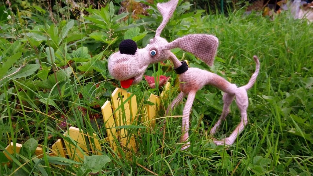 - Собака -Некусака связана из нити в два сложения Махер бабинный и акрил 100% , крючок 2