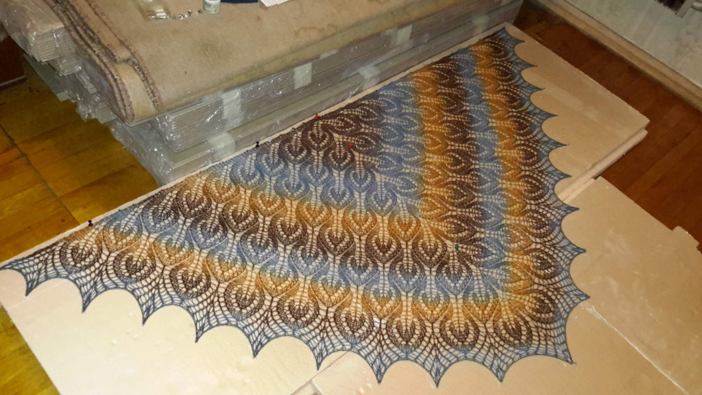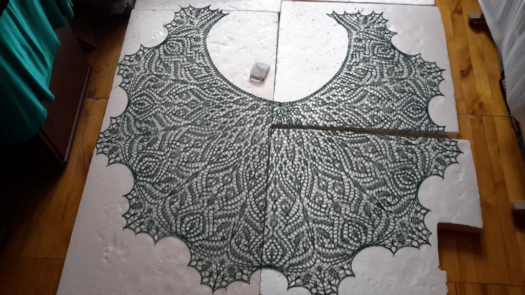 Шальки вяжу, изредка салфетки, зимой шкатулочки на подарки вязала. Под рукой есть одно фото крайней шали, всего около 30 шт связано.