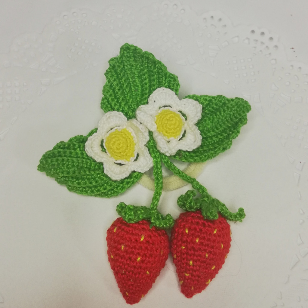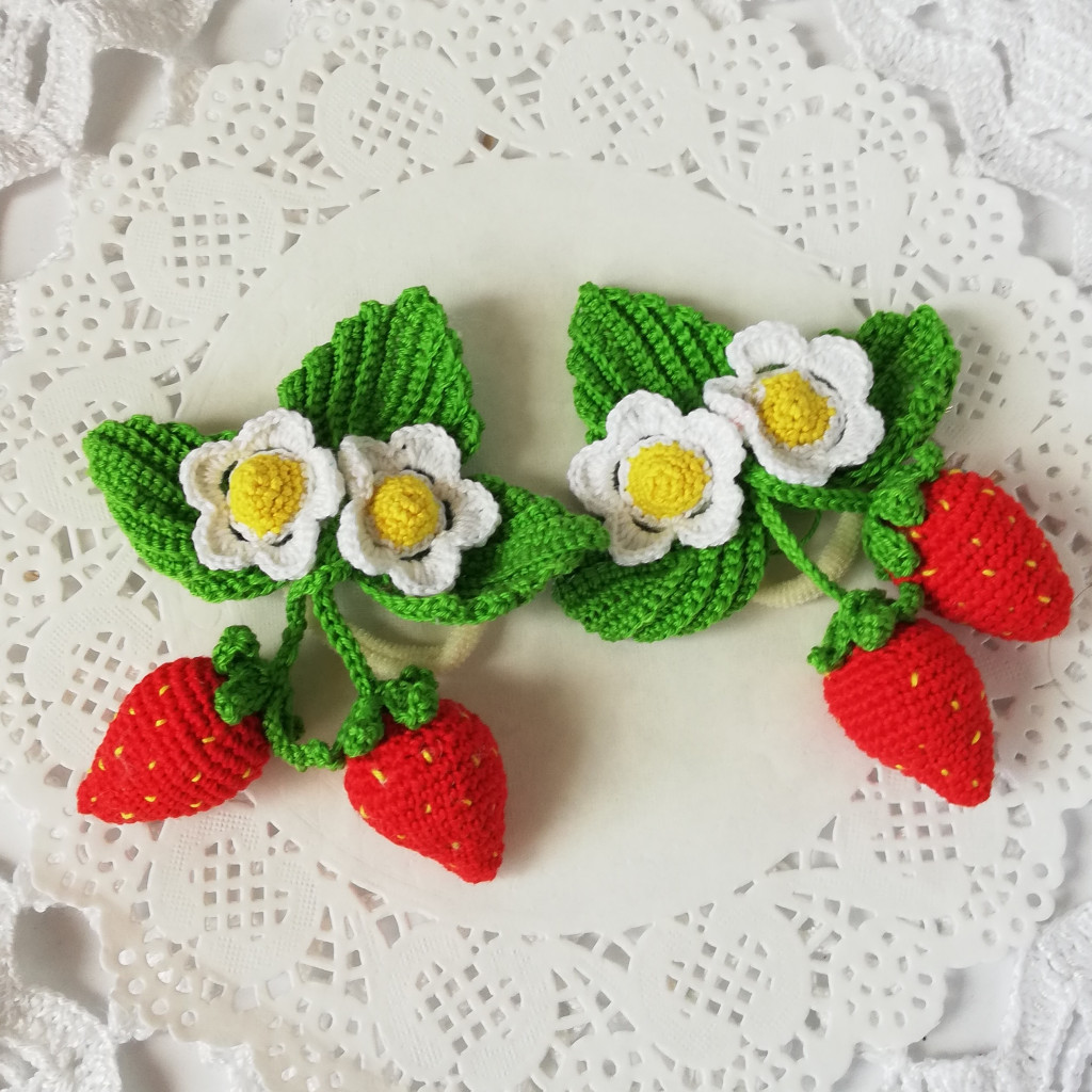 Доя маленьких модниц. Браслетик и резиночки для волос "Клубничка"