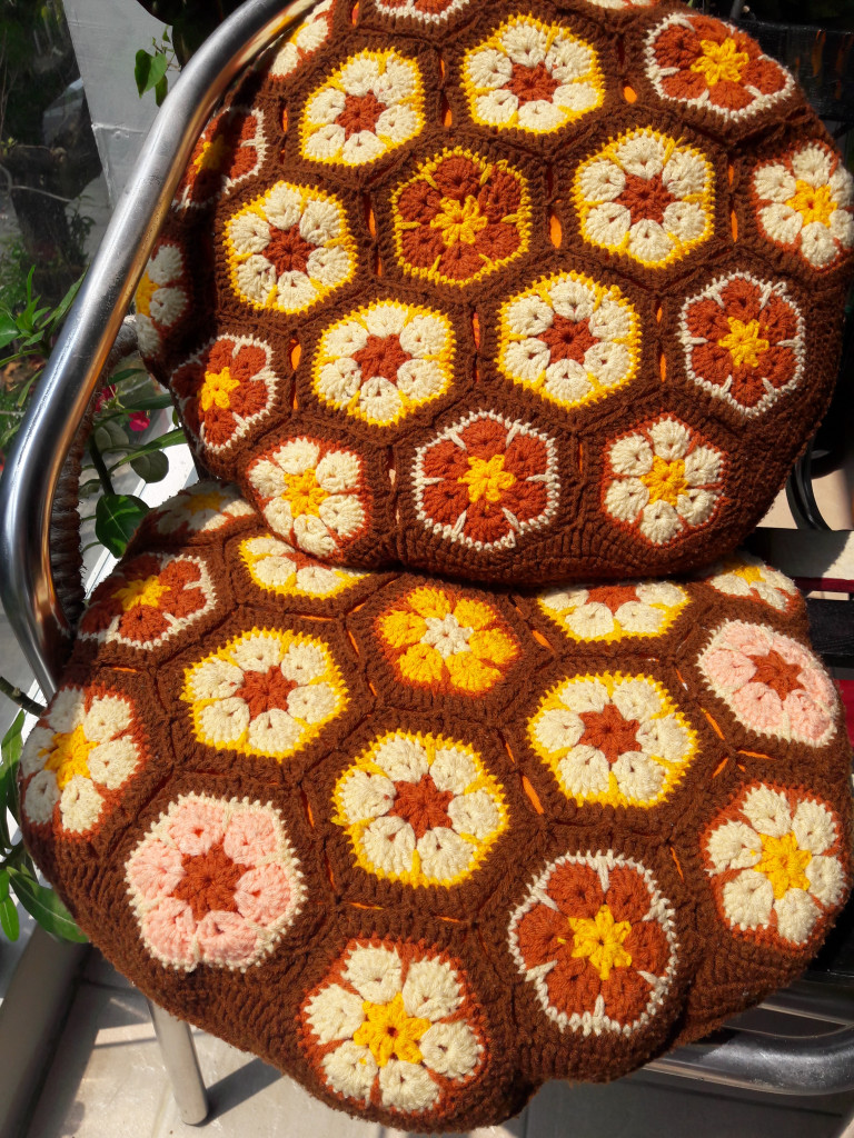 Шали связаны тунисским крючком - первая обычным односторонним на леске, вторая - двухсторонним тунисским крючком.