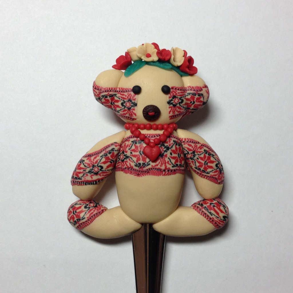 Давненько уже я начинала мое творчество с лепки из полимерной запекаемой глины. Рисунок на мишке-ложке составляла из тонких полосочек, вот была забава)