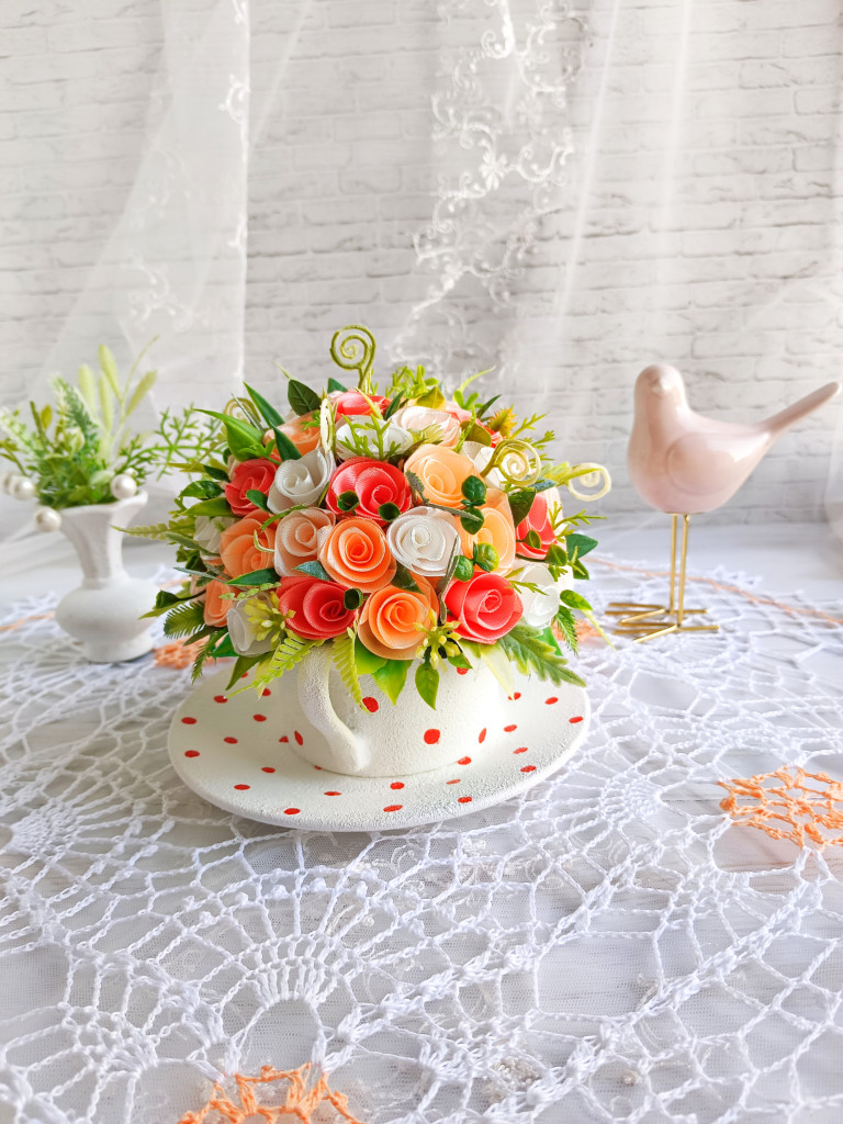 Обожаю делать цветочные кружечки из атласной ленты