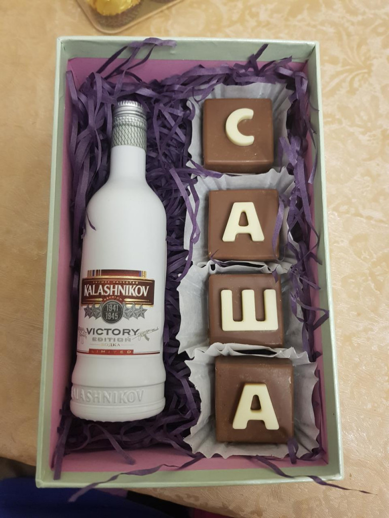Эта коробочка для мужчины - инструктора по вождению, в качестве комплемента. Состав: пельмени, сало и колбаса)
