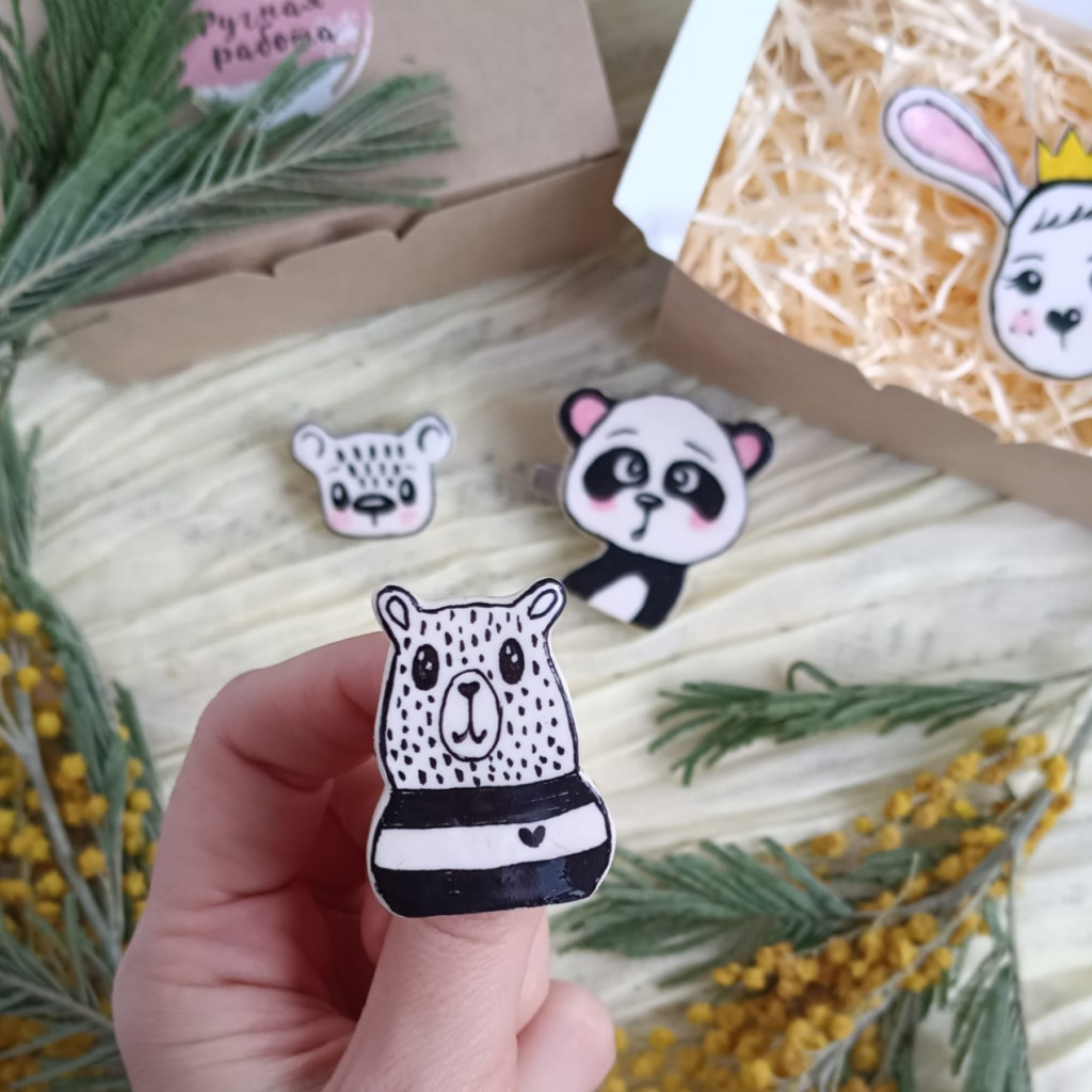 Леплю вот такие забавные броши из самоотвердевающей глины