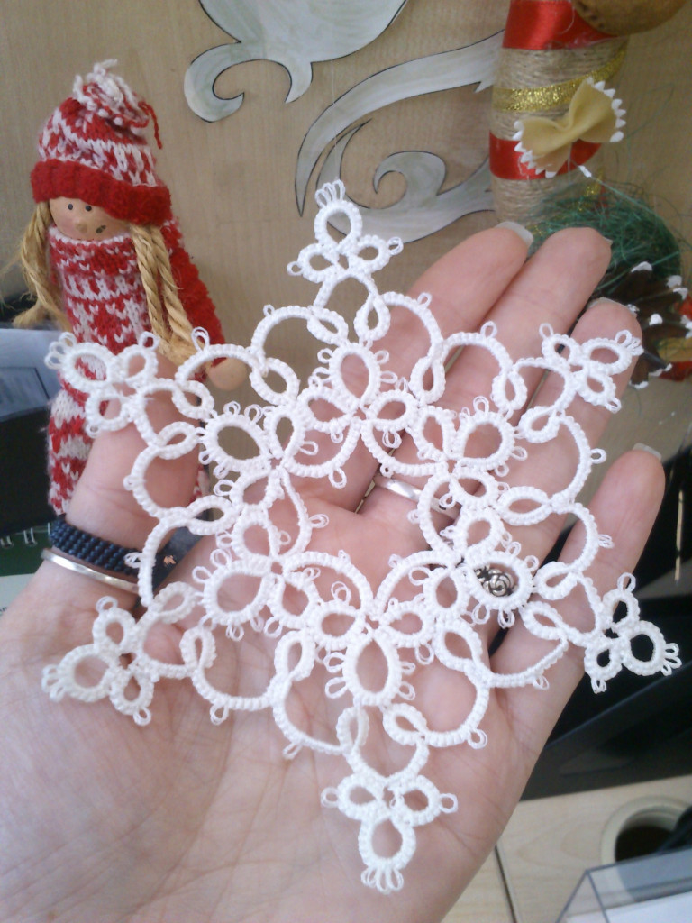 Кроме вязания я ещё и плету. Кружево фриволите.Вот такие снежинки к новому году готовлю.