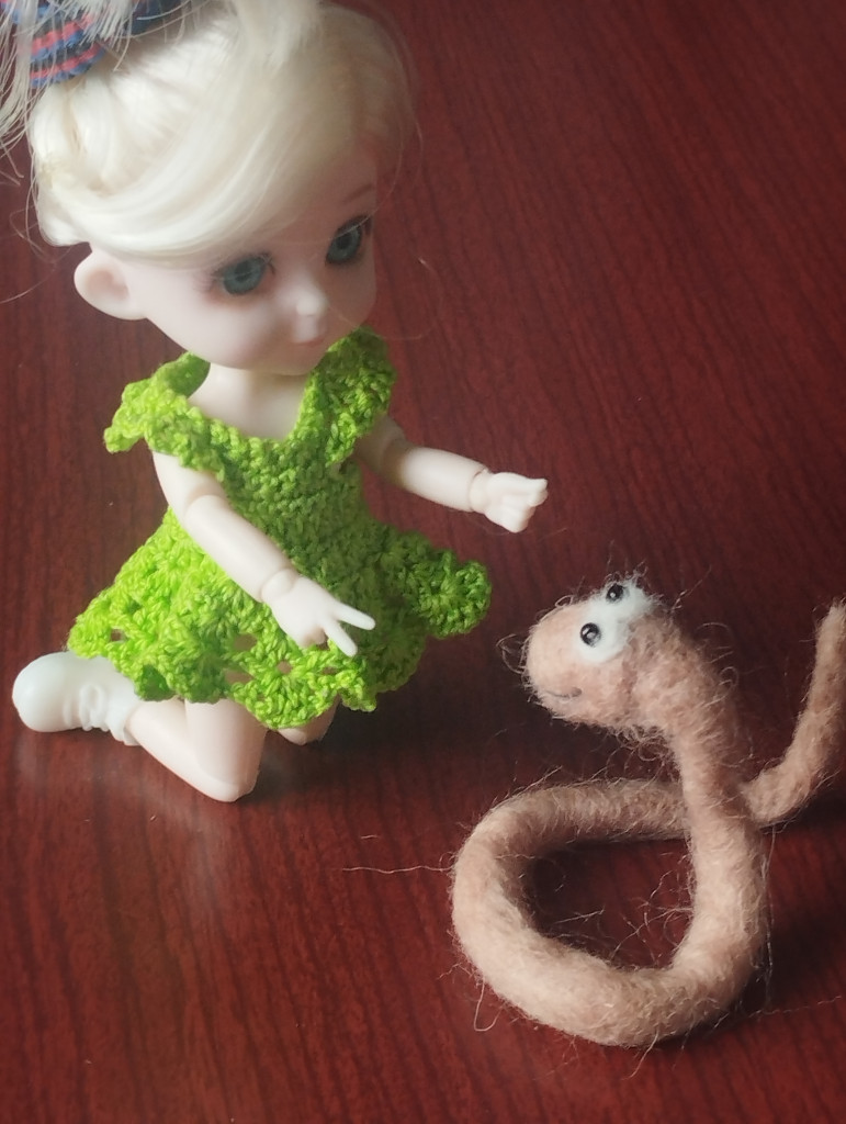 Пробую валять. Вот такая змейка получилась, на каркасе, можно сгибать