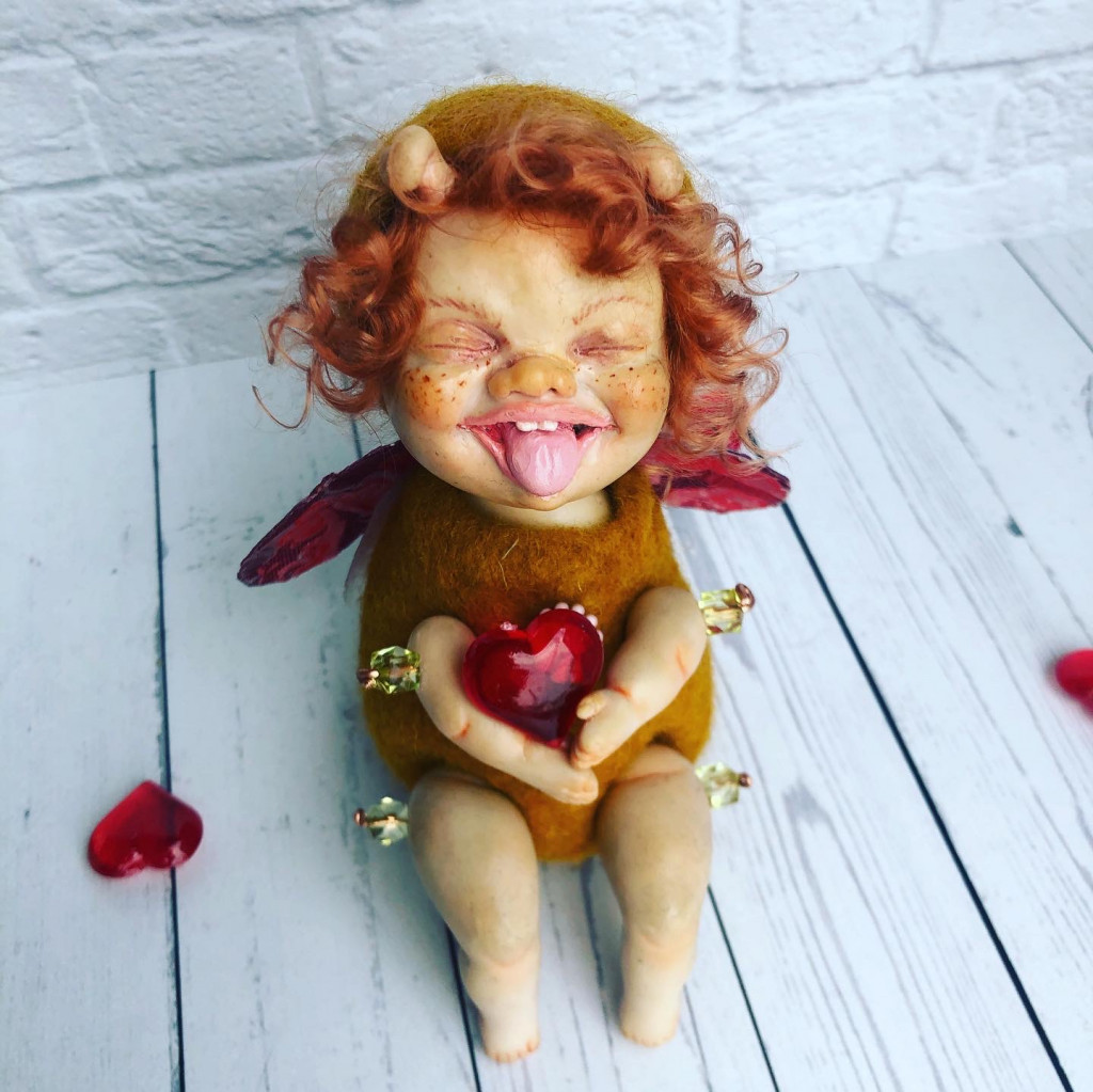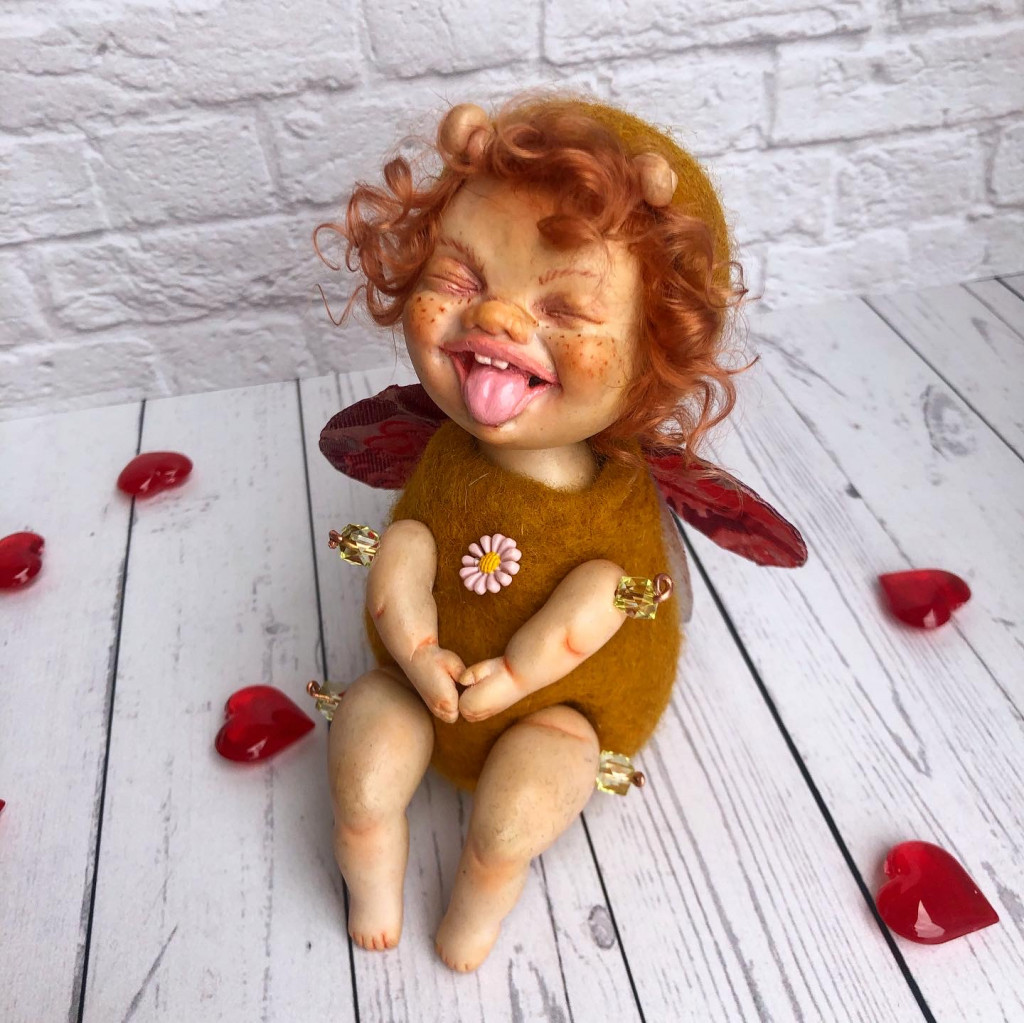 Мушка хохотушка. Сделана в смешанной технике. Валяние и лепка