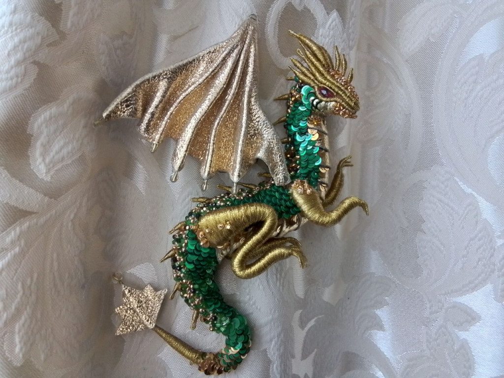 Участвовала в марафоне по созданию каркасный броши Дракона Алдагона школы вышивки Ангелина Пеях.