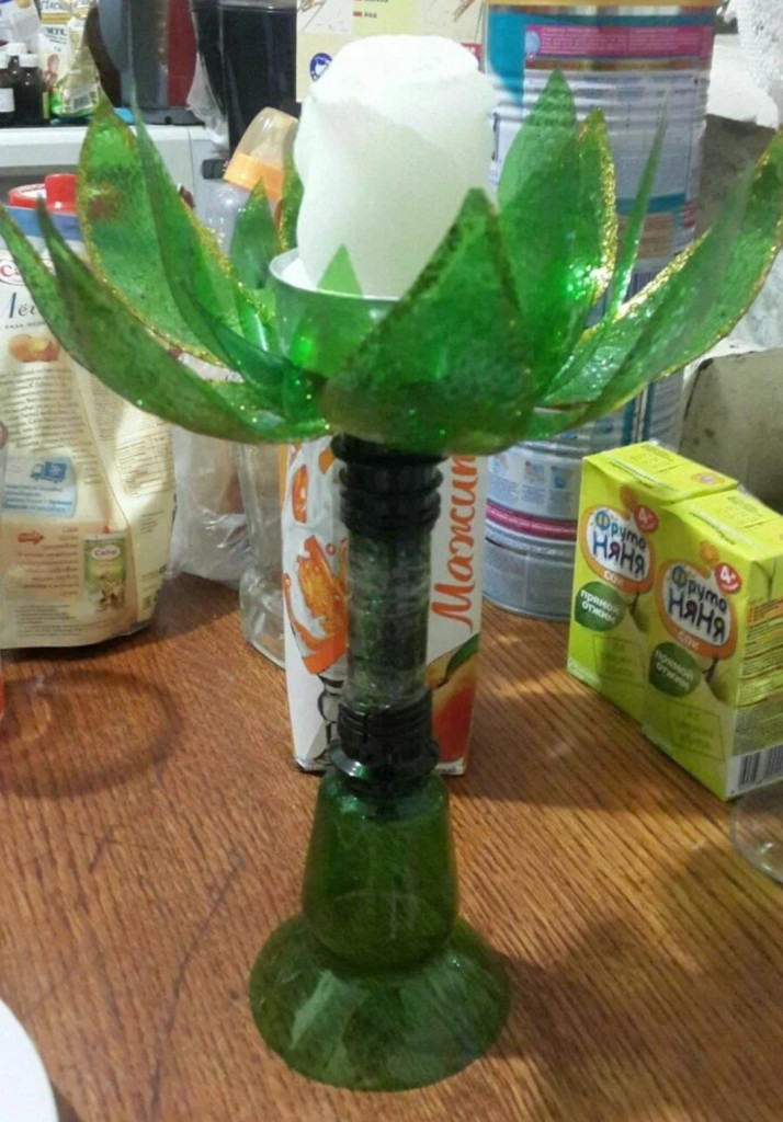 Чего только не перепробовал я делать:)) к сожалению, фоток не сохранилось. Одну вот только откопала- подсвечники из пластиковых бутылок