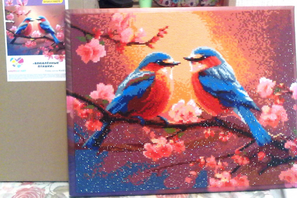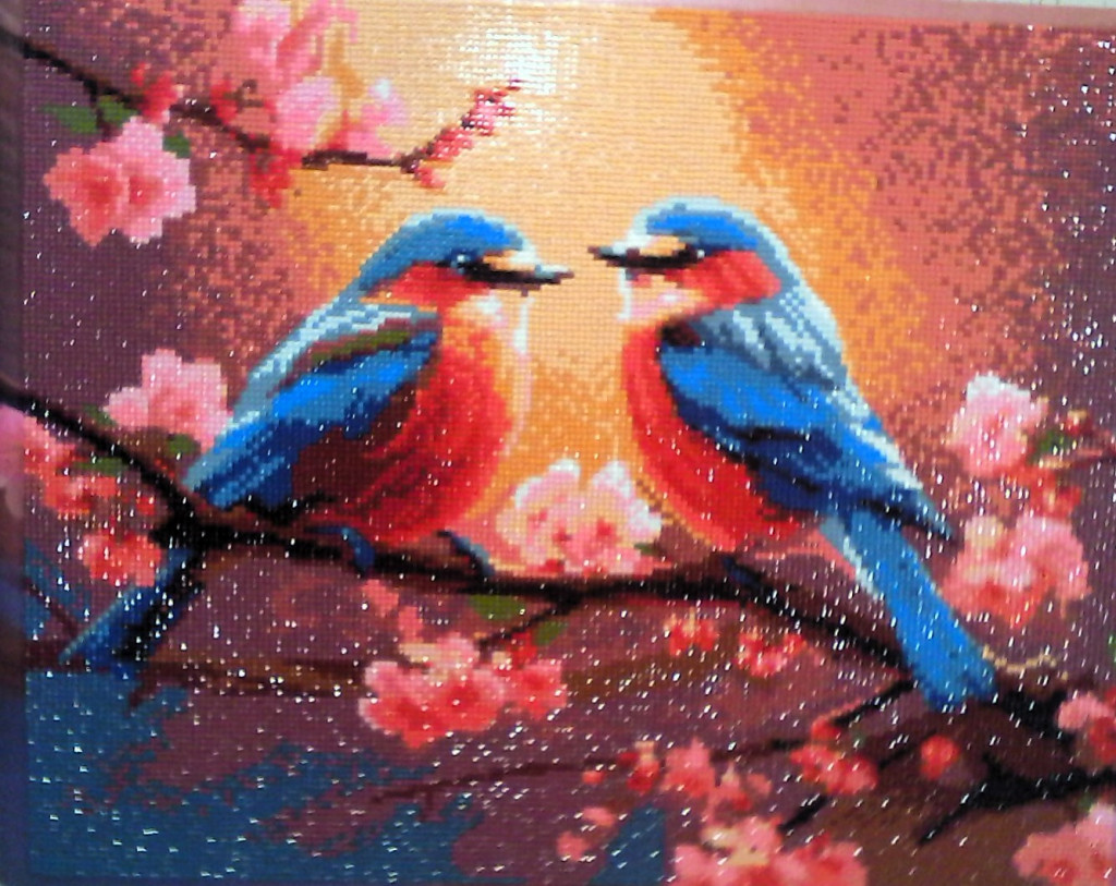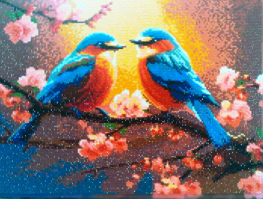 Не знаю сюда ли, но вот закончила картину "Влюбленные пташки" Алмазные стразы. Новое увлечение после вязания.