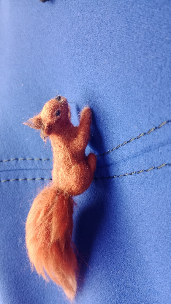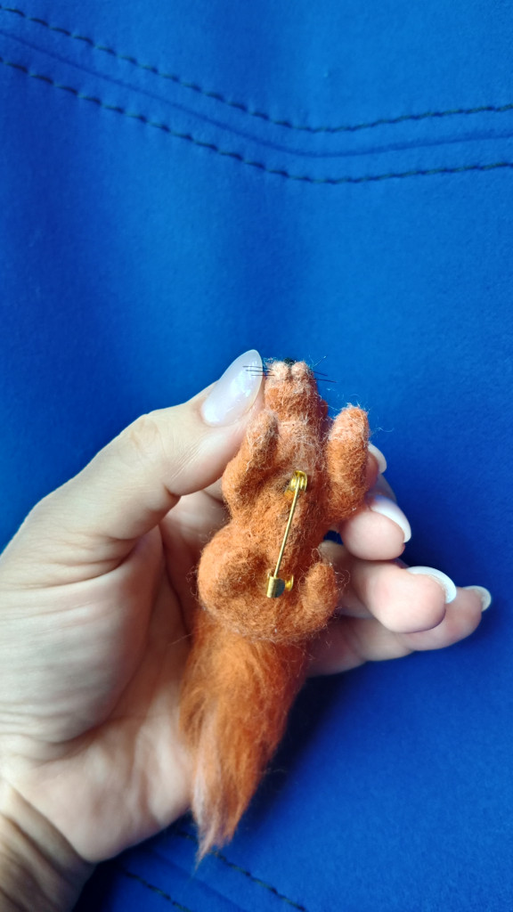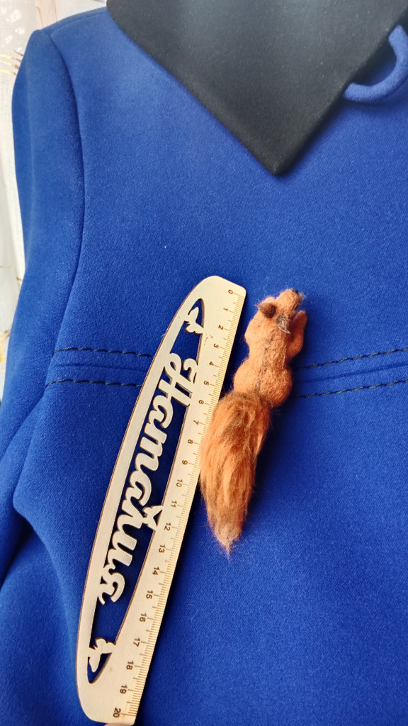 На форуме не так давно в теме : " Поиск схем и описаний" искали мк вязаной брошки белочки, я посмотрела на её фото и подумала : а почему бы и не свалять? Продумано-сделано
