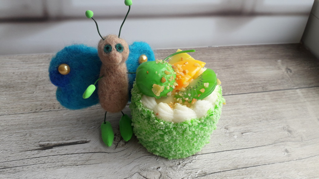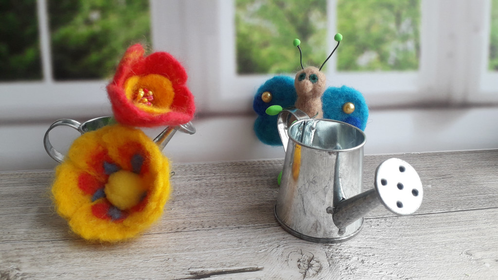 Бабочка и цветы в технике смешанного валяния.