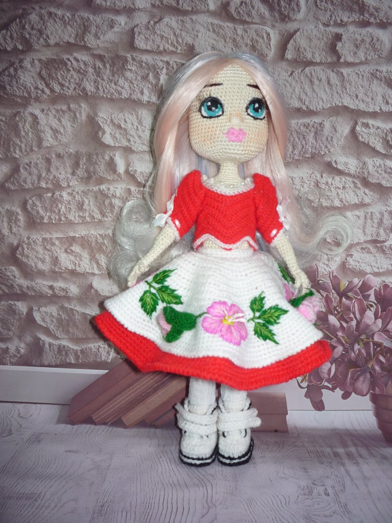 Вот такая кукла связалась у меня по просьбе подруги) Как вам?