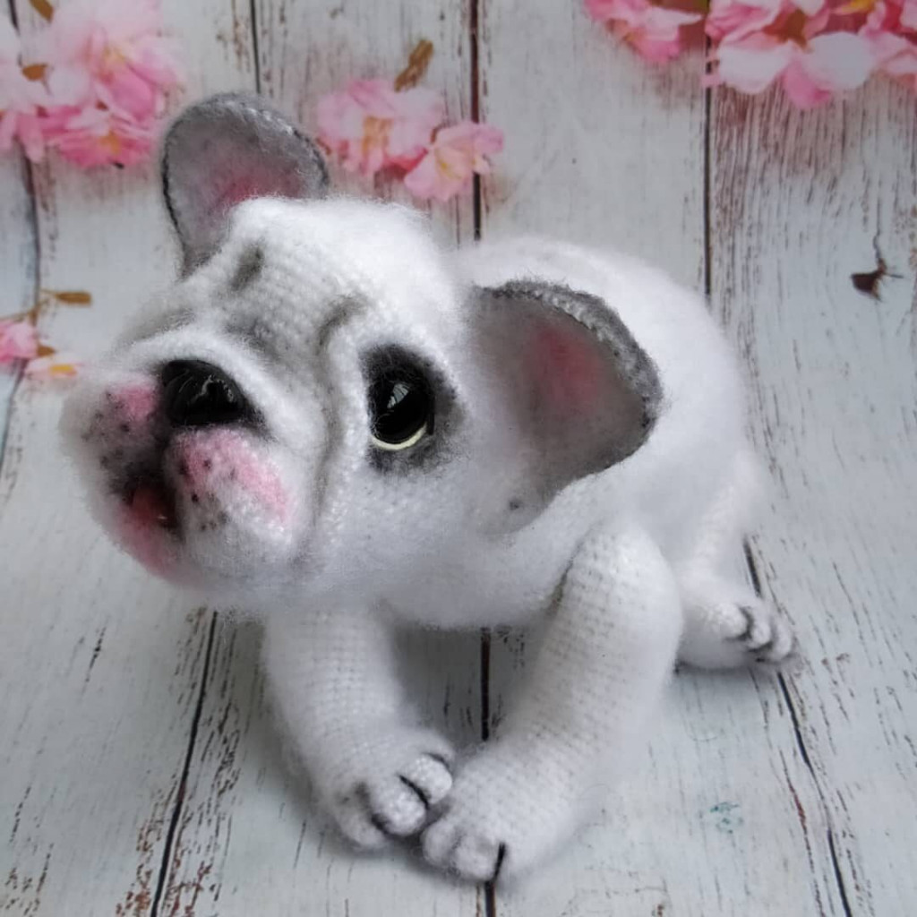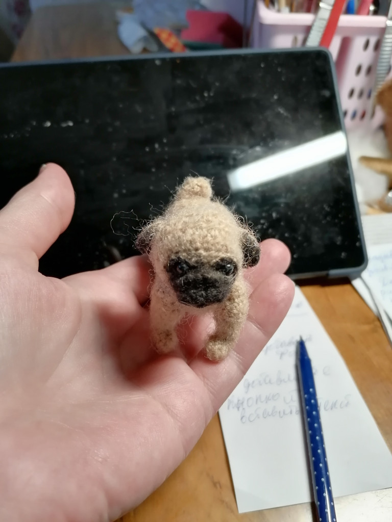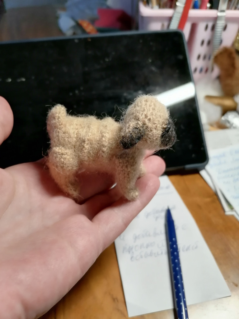Мопсеныш в холке 4,5см,в длину 7см.связан по мк Натальи Пережигиной.