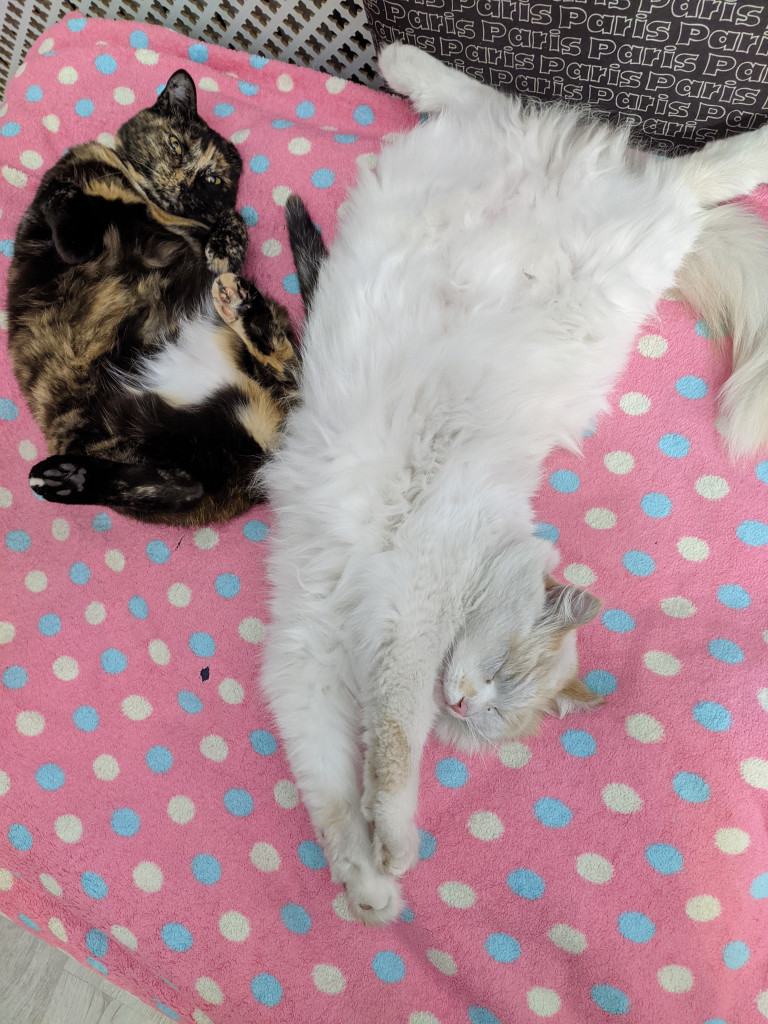 Мотя и Омар, недолюбливают друг друга и яростно делят территорию, но иногда спят вместе