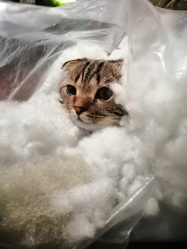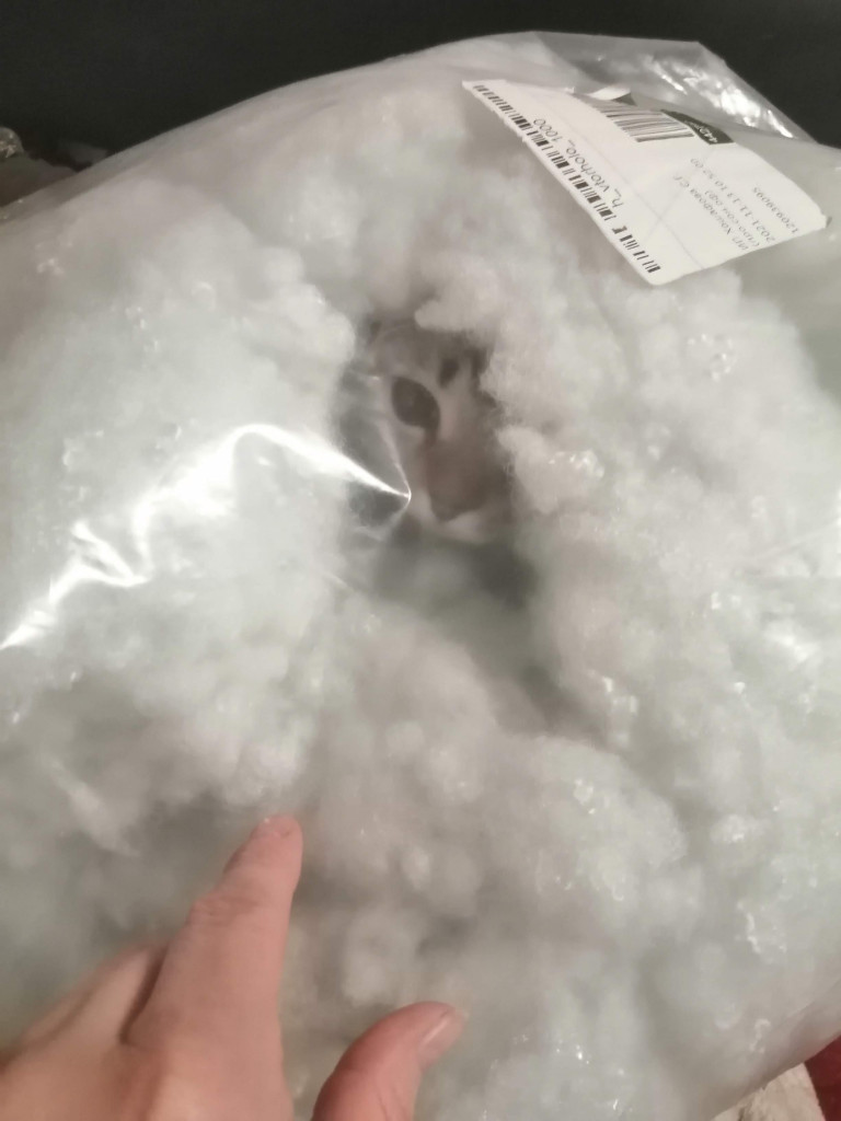 Покажу и я своего помощника. Любит спать в пакете с наполнителем