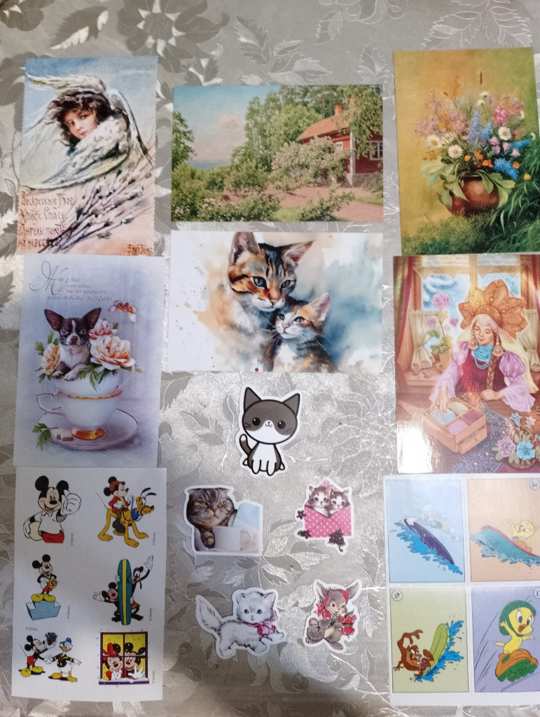 Жаник, я только на фотографии заметила свой адрес - у меня в доме дробь не 5, а 3. Доча, естессссно, забрала себе все наклейки и ещё прихватила пару открыточек (взрослеет девочка - на открытки потянуло)
