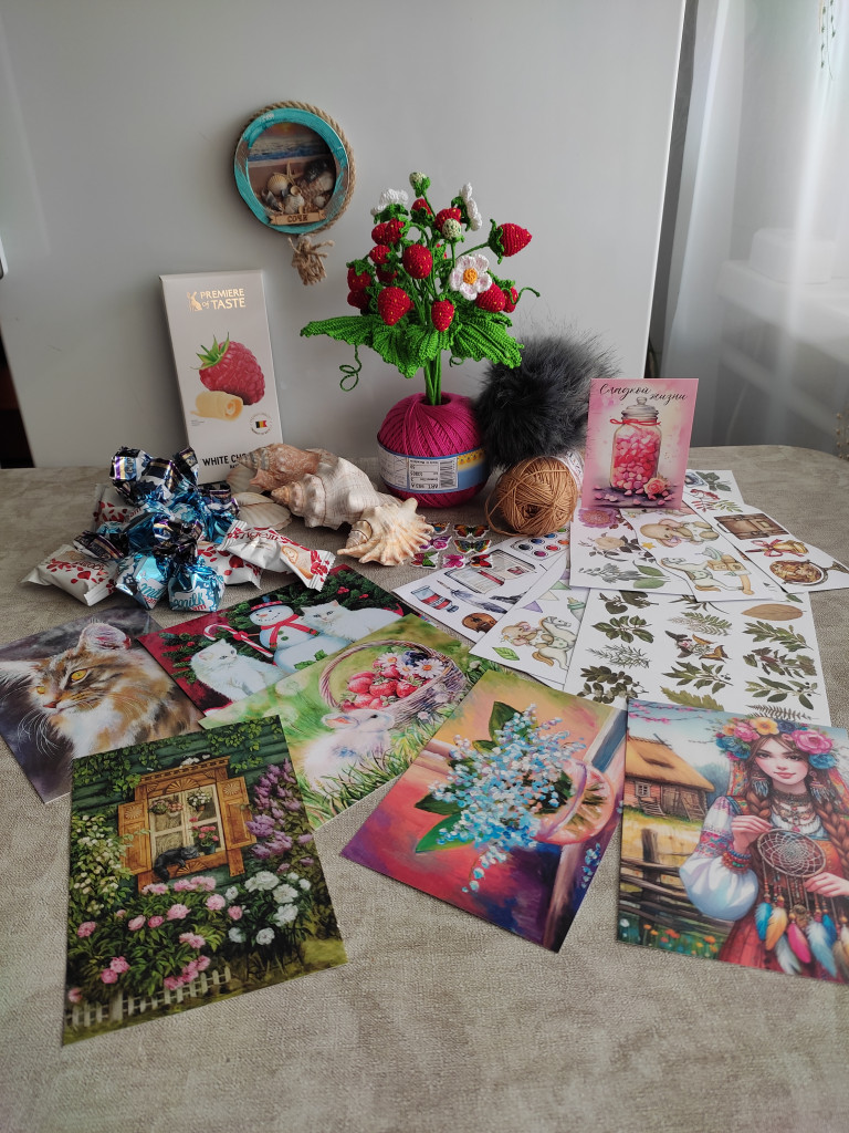 . Но тут прилетела Волшебница Жанна и тут же у меня появились ягодки, такие чудесные, такие настоящие, нет, даже лучше настоящих! А ещё вкусности, морские сувениры, бумажные радости и чудесные открытки!!! Жанна, благодарности моей и радости моей нет предела!!!