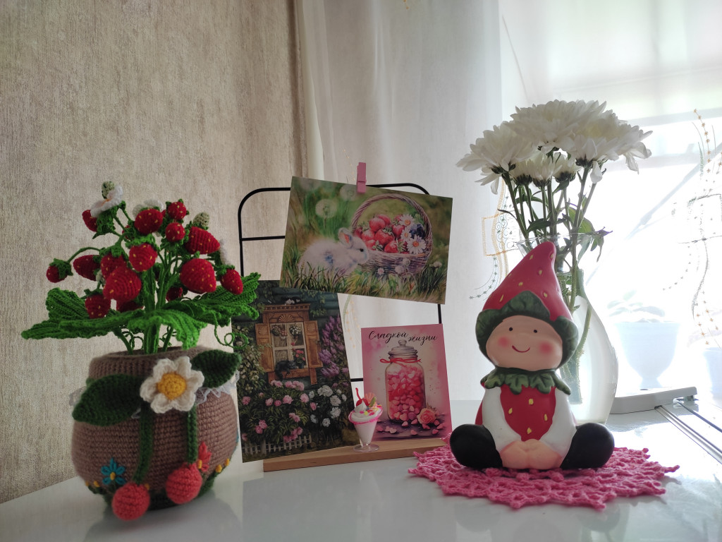 Хочу поделиться радостью, которую я получила прям в день выпускного от самой волшебной Волшебницы Жанны @nisana . В летнем обмене я получила чудесный ягодный горшочек от Ирины @Myst . И замечтала я тут же, что надо мне в этот горшочек ягодки связать для летней композиции. Самой вязать долго, не знаю, когда бы собралась