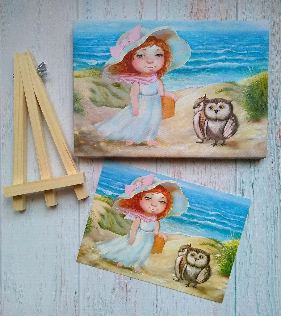 Но я ещё не знала, что меня ждёт в небольшой коробочке, которая тоже была в посылке. А там была картина на холсте моего любимого автора и мини-мольберт под картину. Теперь частичка мира, где живут Ангелы, будет у меня дома. Девочки, вы представляете, Света написала художнице и заказала это всё для меня