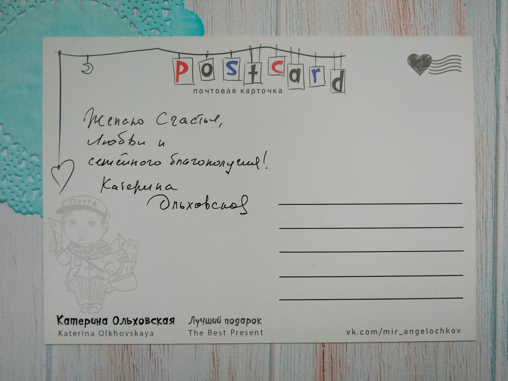 Плюс Катерина Ольховская подписала мне свою открытку.