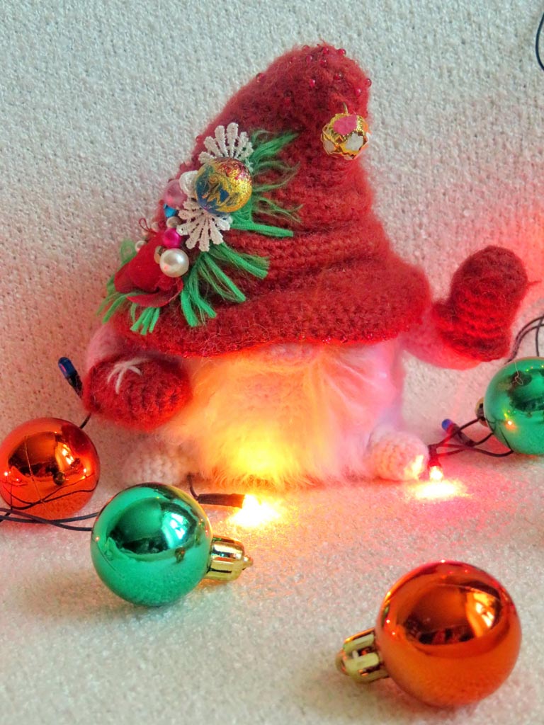 Связана ёлка-гномка пряжей ALIZE forever. Крючок 0,8 от Gamma.