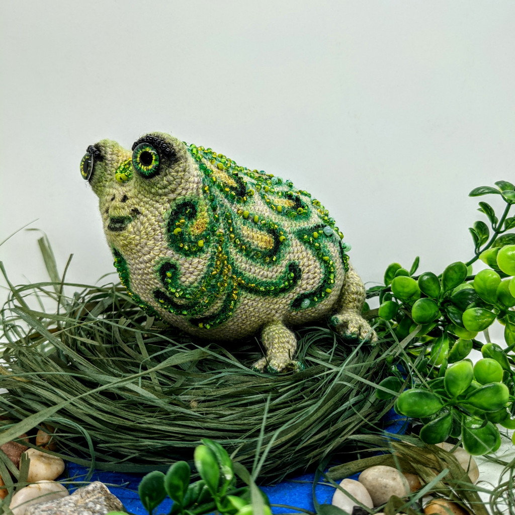 Результат тестирования нового МК Екатерины Виноградовой "Царевна лягушка". Приглашаем на онлайн по лягушечке!!! Старт 16 февраля! Игрушечка вяжется быстро и приятно, очень большой простор для оформления и можно опробовать оригинальный и интересный способ от автора по тонировке игрушки!!!