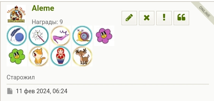 @Aleme Очень интересно, Саша.. Такую же историю я вижу у Нади @n-maks1965. Давай я тебе скажу, что зелёный цветочек - это Конкурсант, а почему он вдруг выскакивает из профильных наград, будем разбираться. Кто-то твой цветочек снюююююхал)) А ещё кто-то медалей недосчитывается?