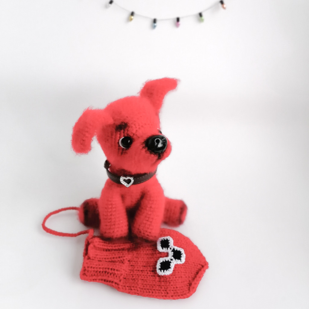 Портретная брошка шпица Баксика, связанная крючком из мохера