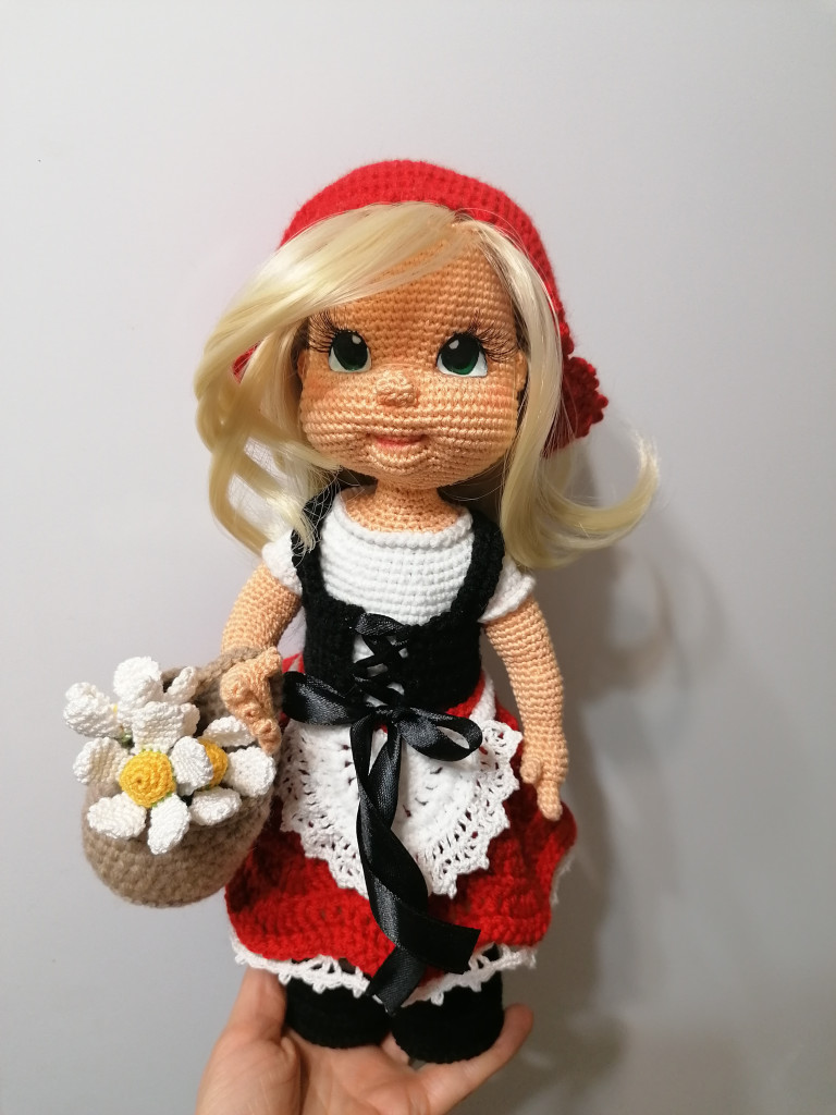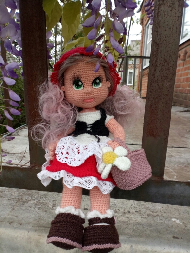 Наверное, в детстве не наигралась. Это моя последняя, связано абсолютно все, включая цветы и корзинку. Мк Елены Аккоджа
