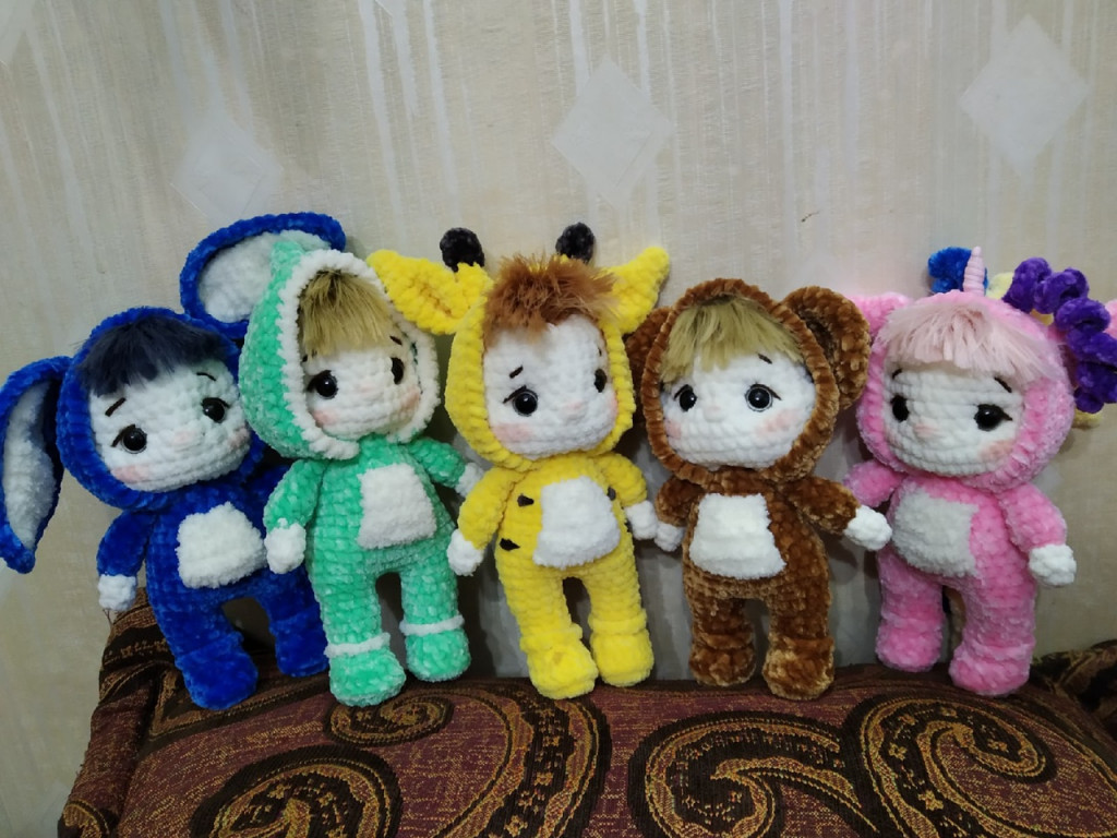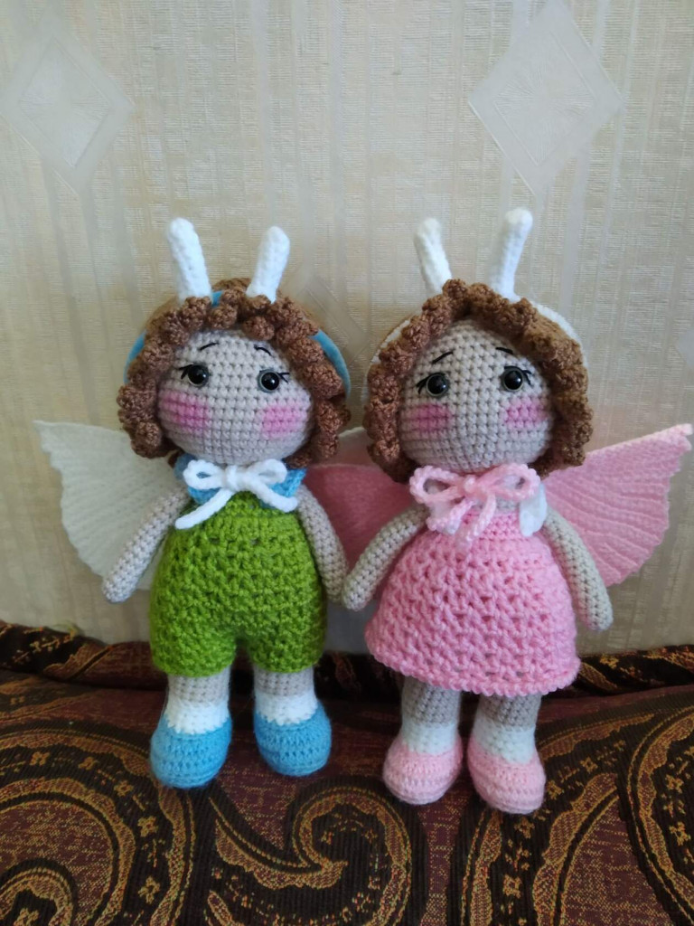 Я вязала куколок и пупсов . Было очень много связано, но фото осталось мало и самые первые.