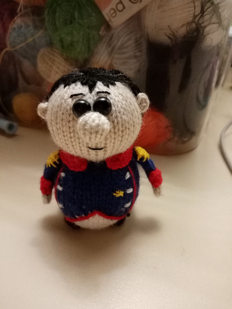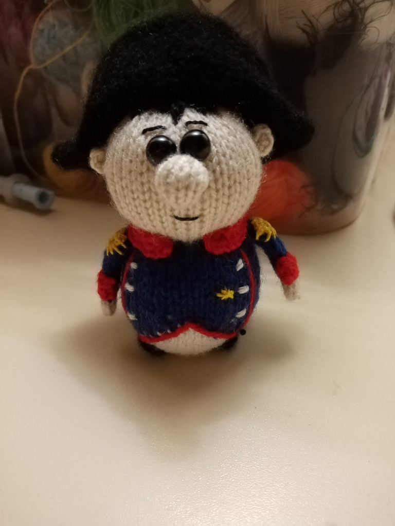 Связан на спицах. Рост 10см.Просили связать Наполеона подобие.