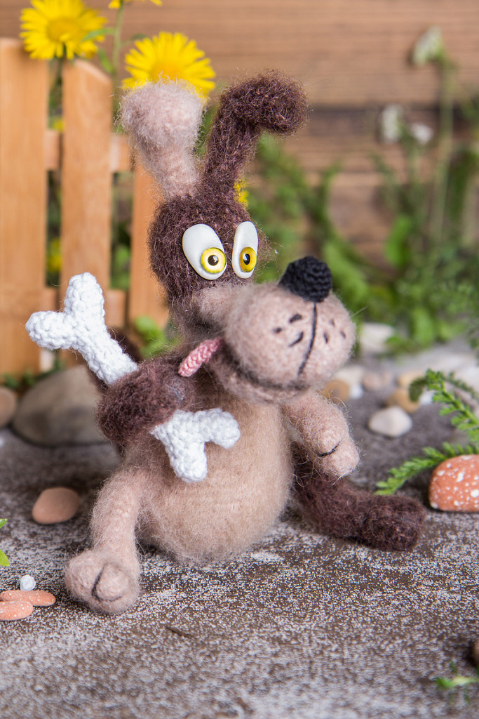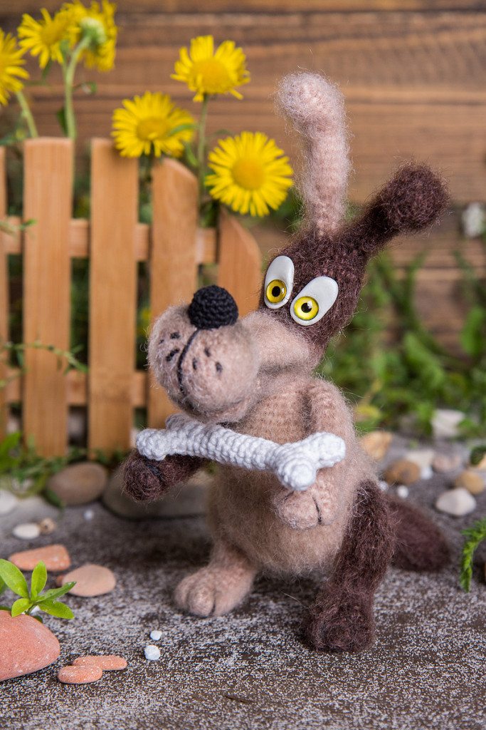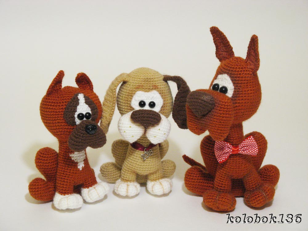 Пёсик с косточкой связан в рамках тестирования по МК Любови Чернеги. Второй пёсик вязался на Новогодний обмен.