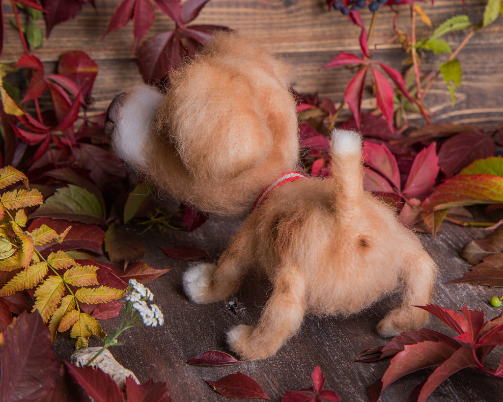 Рост каждого 17 см. Фактурная пряжа, голова поворачивается в разные стороны (шплинтовое крепление). Нос из запекаемой пластики. Водостойкая тонировка.