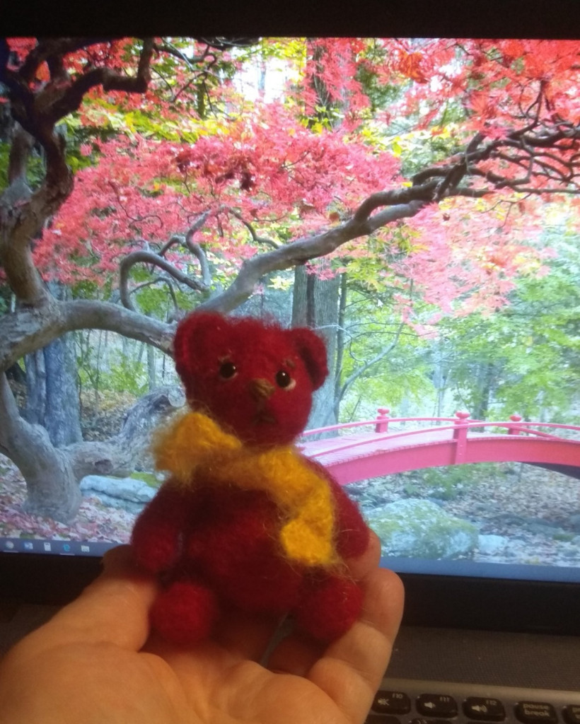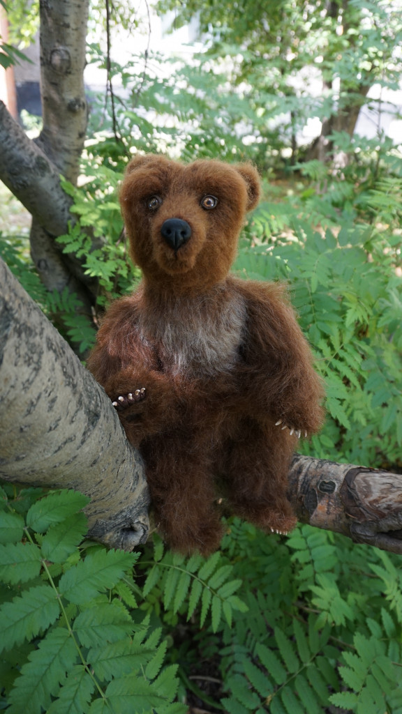 Мишка по МК Наты Ташлыковой. Голова на шплинтовом креплении, лапы на нитяном. Сидя 9 см.
