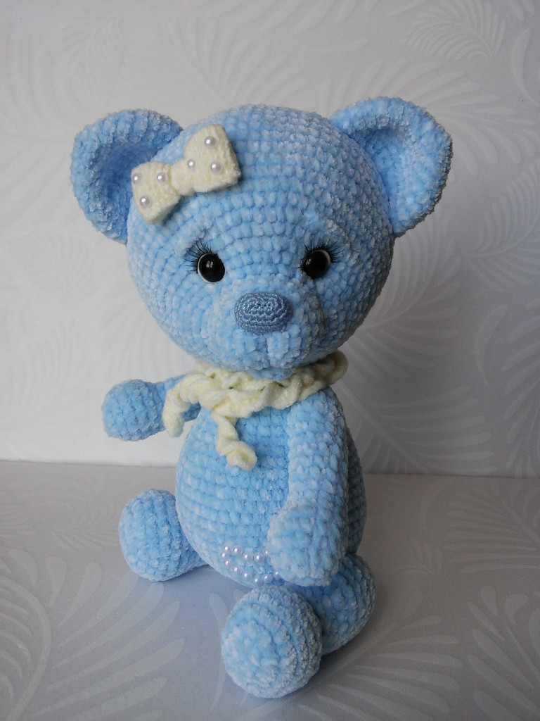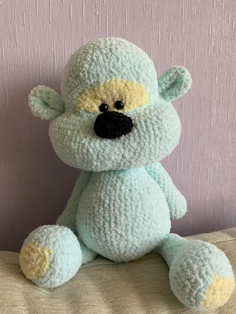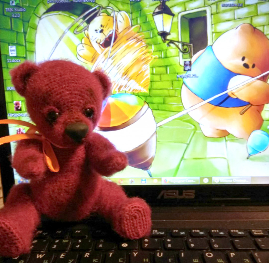 Этого мишку придумала Ксения Ремнева. Не устану благодарить Ксюшу за то, что у меня дома появился такой мишка. Я получила огромное удовольствие, пока вязала его