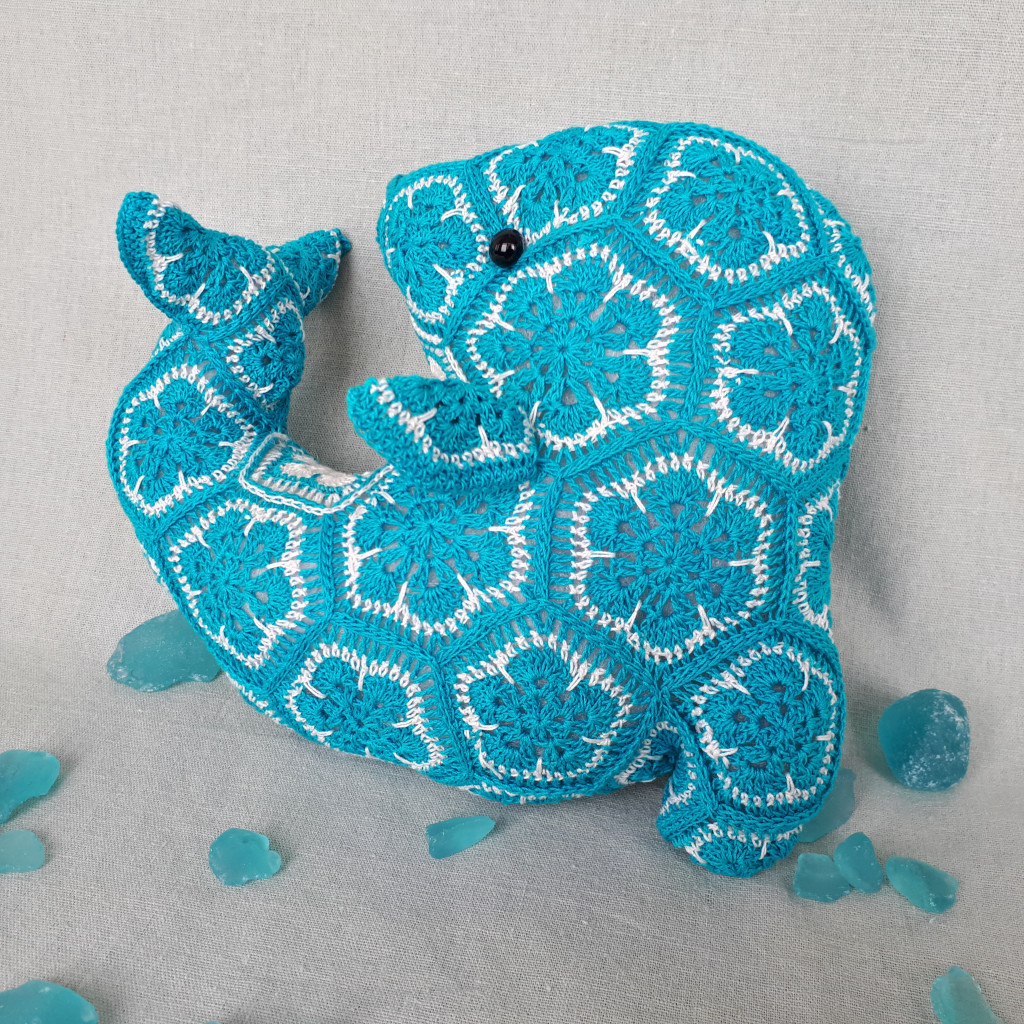 Дельфинёнок по описанию Nitto Shoin из японской книги 日東書院さんから出ている「モチーフをつないで作る動物のあみぐるみ」