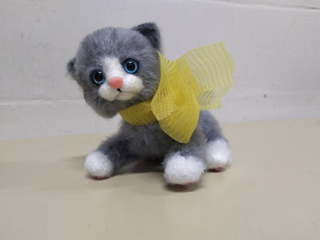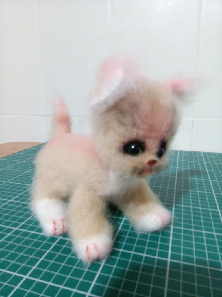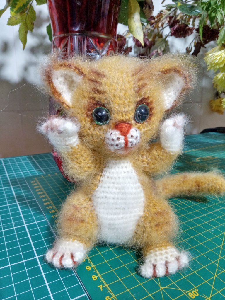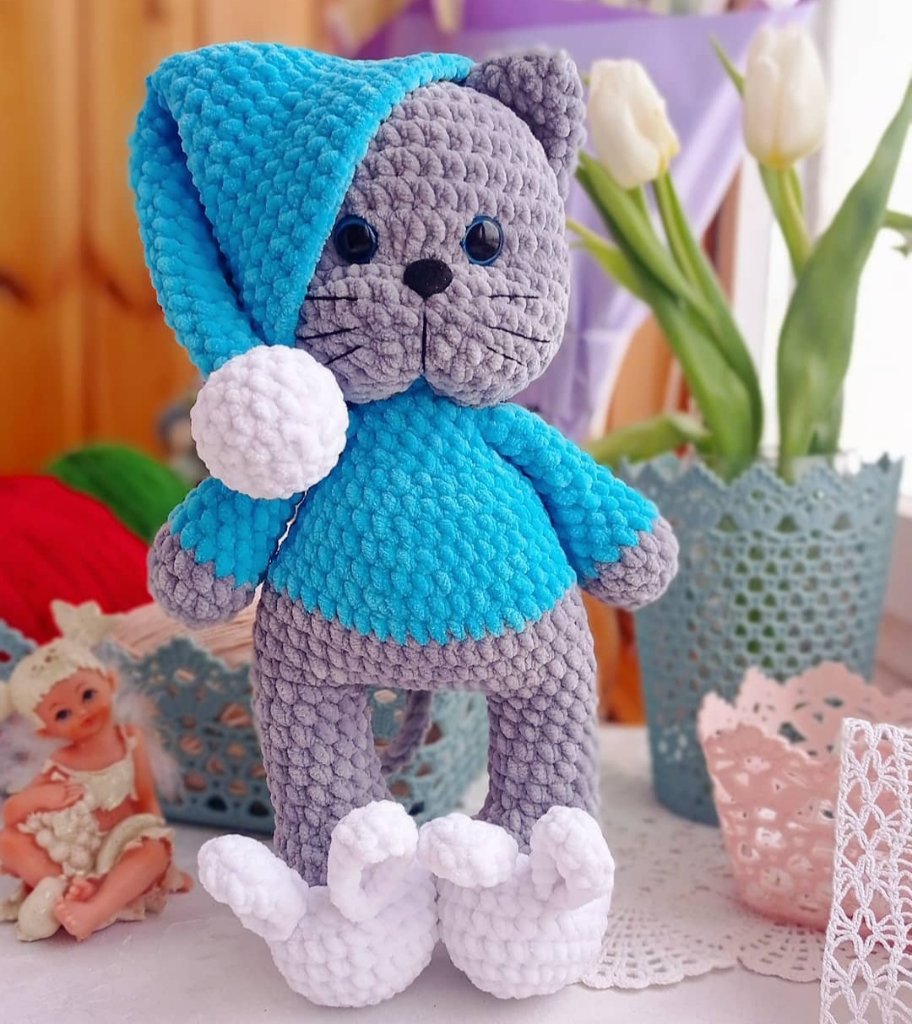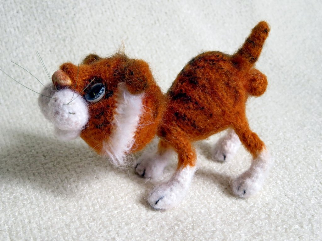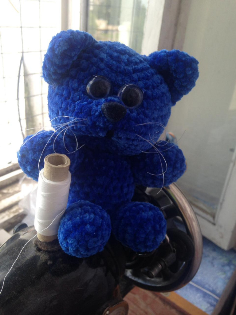 последняя моя работа, котик связан по картинке с пряжи джинс, рост 13 см.