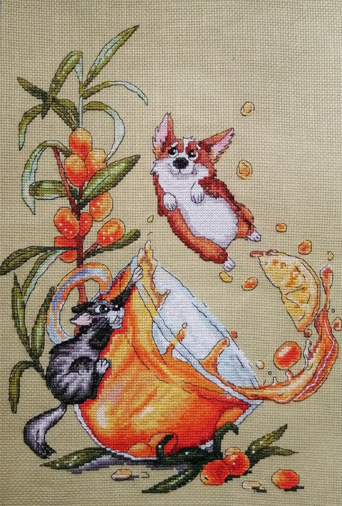 Вот такую красоту вышивала. Сейчас начат набор Хранители чая. Хочу всю серию и на кухню на полочку.