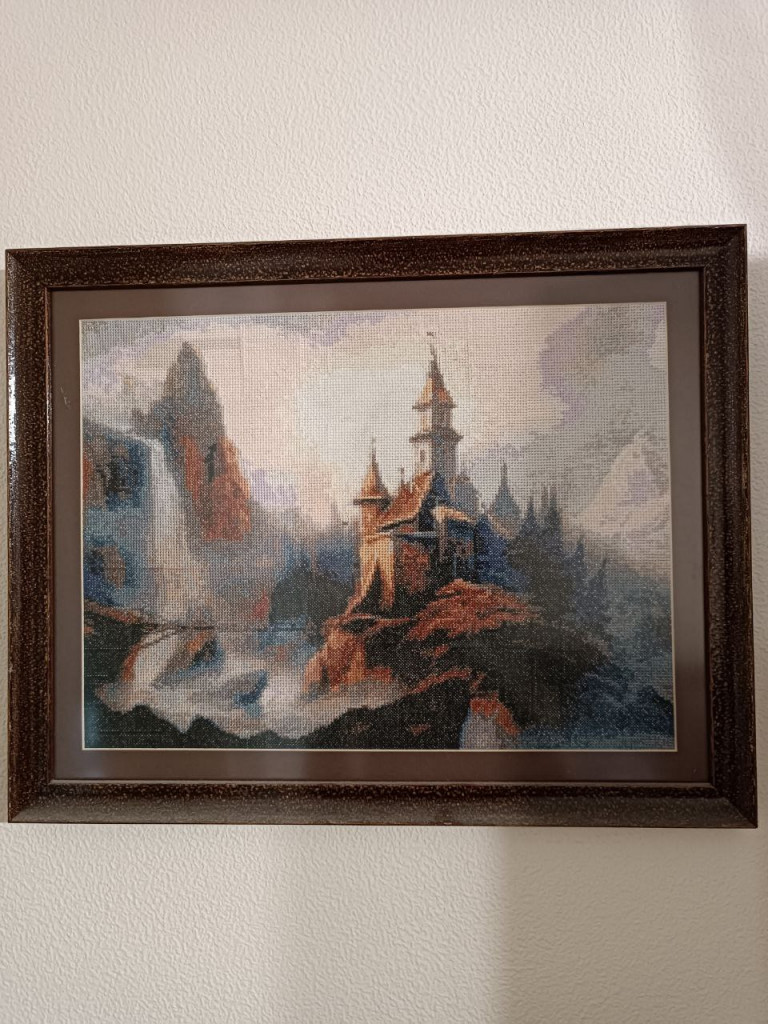 Я вышивала раньше запоем, очень нравилось. До сих пор дома лежат наборы, мулине и станок ))) И все еще надеюсь вернуться к огромной и любимой моей работе с 12-ю парами в исторических костюмах. Может быть, вы, дорогие рукодельницы, сможете придать мне волшебный пинок ))) А пока покажу две картины из тех, что висят дома.