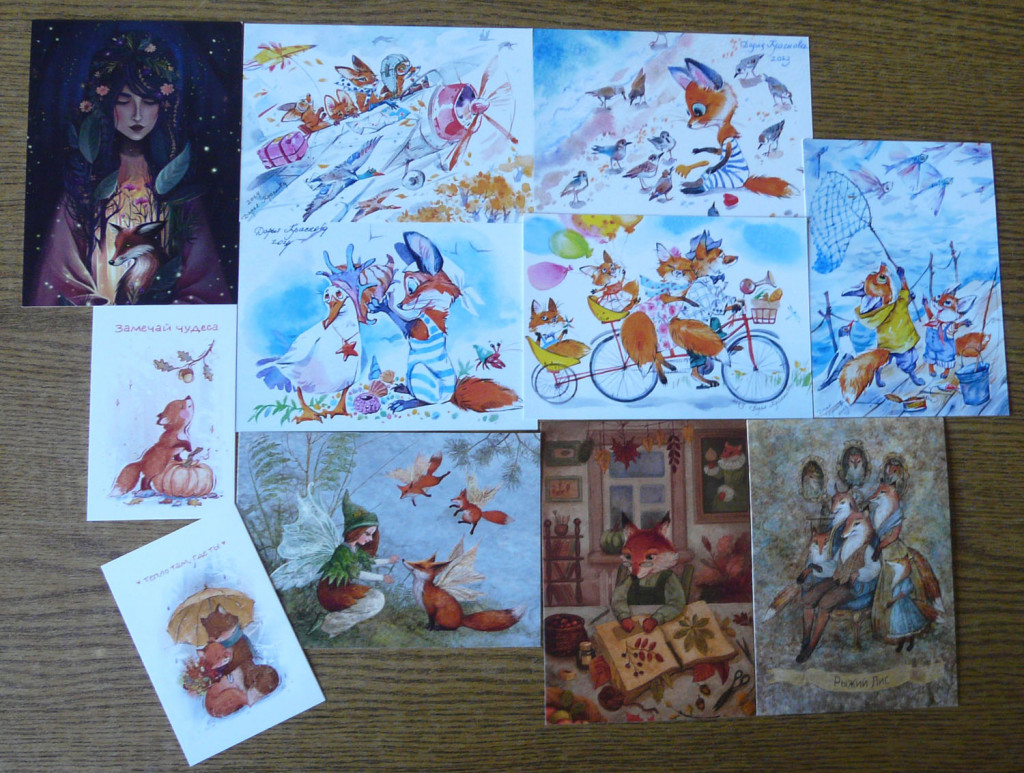 А там... вкусняшки (утром кофе и клюква - это празник), наборчик катушек для ниток, огромное колличество красивейших открыток, да еще и с лисами, это же просто чудо!