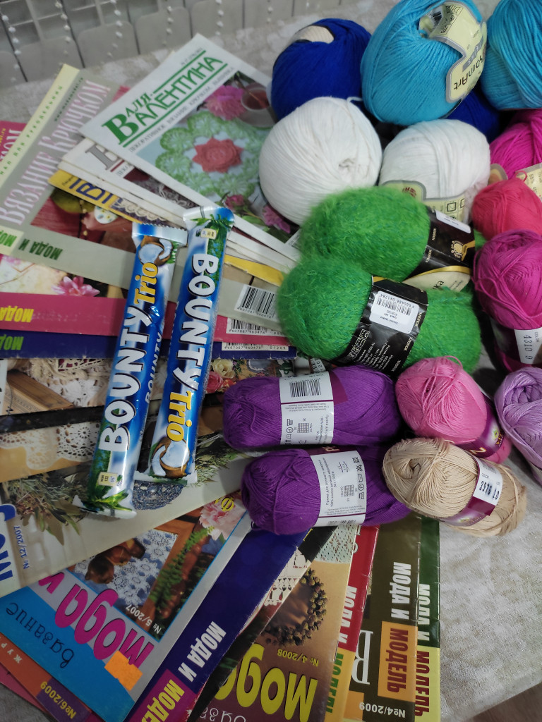Эта тема, про безумное чаепитие нам нужна на постоянку! Мы все тут немного "того", по мнению моего мужа - Я " совсем того" со своим вязанием! В продолжение поздравляльной темы - сегодня отобрала таки у почты свою посылку-подарок!!! Вы когда нибудь видели чахнущего над златом дракона?! Я сейчас в зеркало наблюдаю! Дорогая моя @Елена Фортыгина , даже не знаю, какими словами сказать своё СПАСИБО!!! Я получила сундук сокровищ! Моя милая Фея всё со мной обсудила, но я ж даже не ожидала такого объёма! И клубочки мои любимые ( муж сказал, надо за четвертым комодом идти...) и журналы - это вообще раритет! Опять начала салфетки вязать, а по журналам ну куда приятнее! Воот, ну многие же знают, что краткость не мой талант! Вообщем, спасибо Форуму, что он есть, спасибо нам, что мы тут, спасибо за этот интереснейший квест!