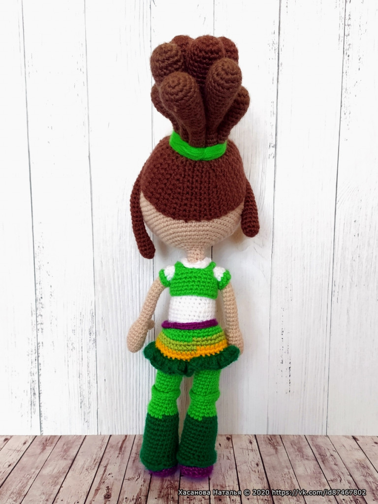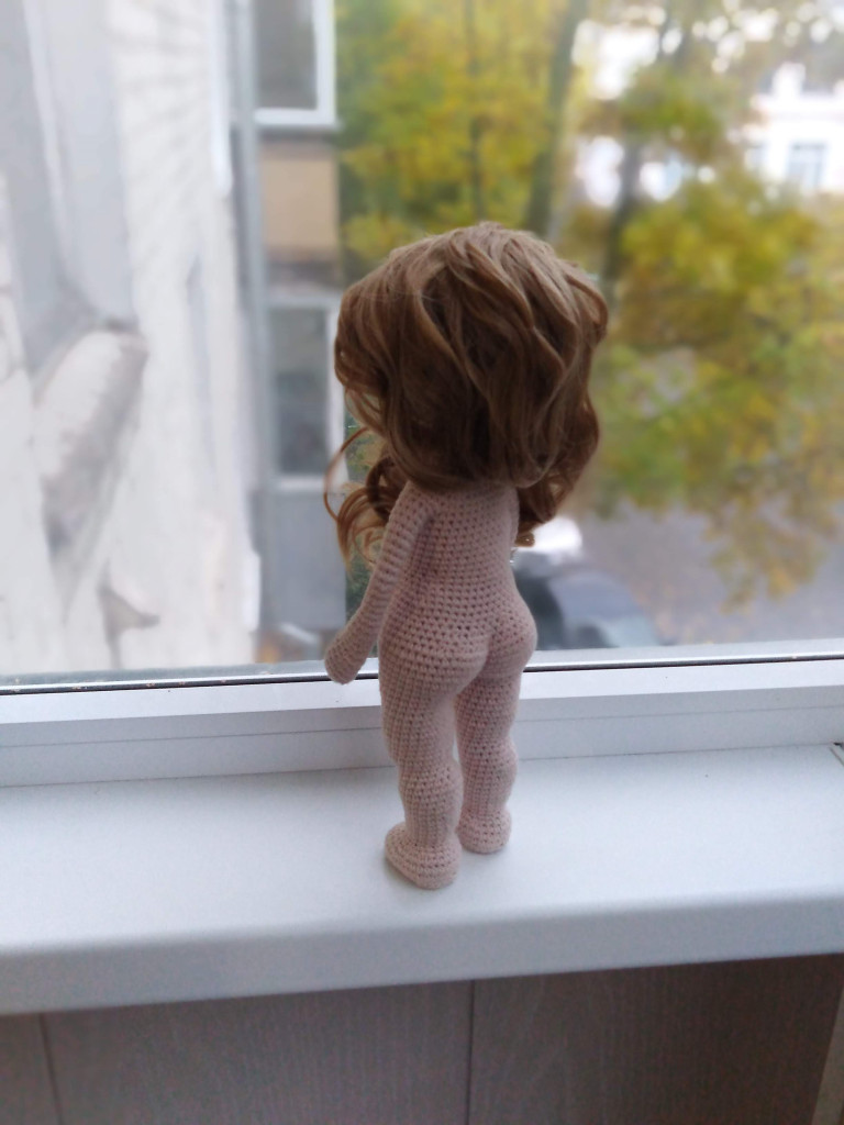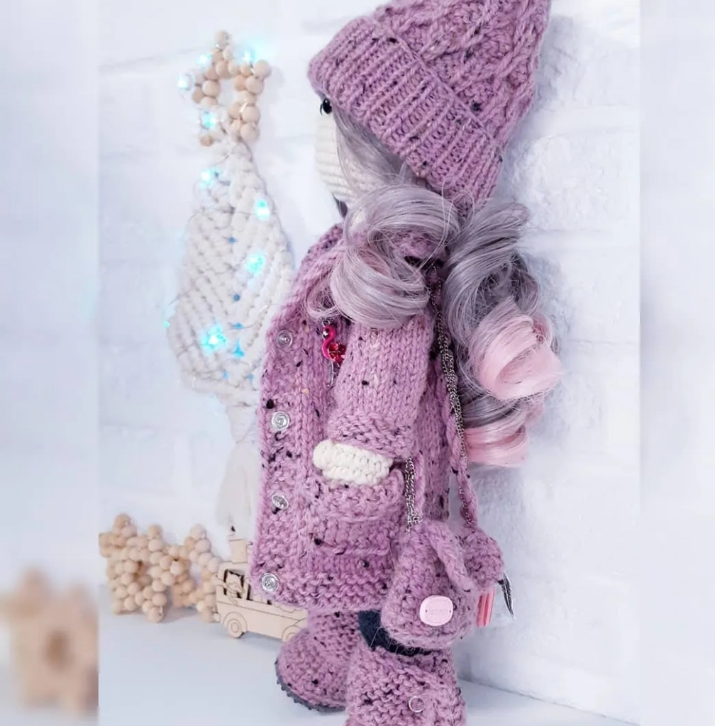 Чей мк не помню, давно было, на ютюб находила что-то, одежда связана спицами и придумана лично мной, мк на нее нет.