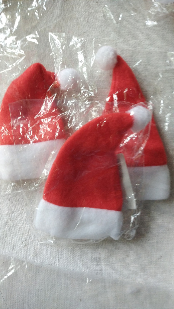 Лот27- по 5р. Шапки деда Мороза маленькие (примерно на бутылку с шампанским) 17 штук